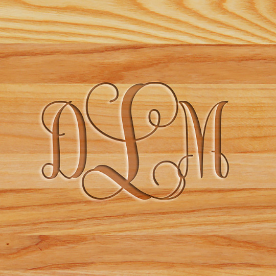 Another very popular way to use a monogrammed cutting board is, of course, for carving. Our wood cutting boards all come with a juice trough around the perimeter and are therefore perfect for carving turkeys, chickens, roasts and more. The trough keeps the mess on the board and not on the counter. The large oval trencher will hold five cups of juice so that even the largest piece of meat can be neatly carved. You can even serve right from the cutting board as they are an ideal serving platter.