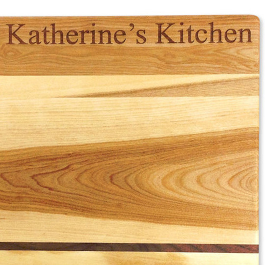 Our personalized cutting boards are made from select dense woods like Maple, Walnut, Birch & Ash which makes a perfect cutting board for kitchen use. The strips of wood are carefully machined and hand sanded providing a very smooth finished product. All of our boards come with sure grip rubber feet attached with rust-proof stainless steel screws.