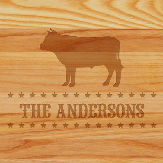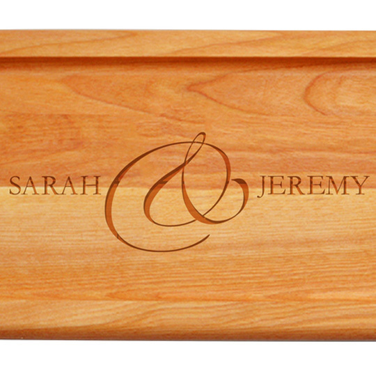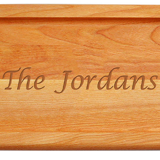 Another very popular way to use a monogrammed cutting board is, of course, for carving. Our wood cutting boards all come with a juice trough around the perimeter and are therefore perfect for carving turkeys, chickens, roasts and more. The trough keeps the mess on the board and not on the counter. The large oval trencher will hold five cups of juice so that even the largest piece of meat can be neatly carved. You can even serve right from the cutting board as they are an ideal serving platter.