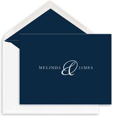 Navy Classic Monogram Frame Folded Note Cards - Embossed