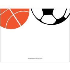 For one of the world's most popular sports, you will find soccer note cards in colors appropriate for both boys and girls teams. It's easy to search our collection for cards with footballs, basketballs, baseballs and bats, bowling balls and pins, and lacrosse and horseback-riding icons. If you enjoy many sports or can’t decide on just one, look for cards that represent multiple athletics.