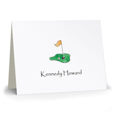 Bright colors and fanciful graphics convey a fun and informal mood in our line of stationery designed for sports enthusiasts of all types. Featuring popular sporting motifs, our collection includes cards that are suitable for any note-writing occasion when an athletic theme is desired. You can invite your friends for a round of golf and lunch on note cards printed with carts, clubs and putting greens. Our golf line features over a dozen different designs for the dedicated player.