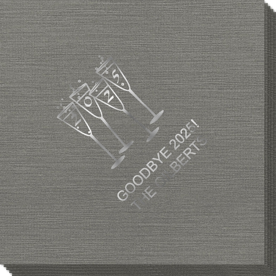 Sample shown using Dark Grey napkin with Silver Metallic Foil imprint and EEDN typestyle and Placement B - Diagonal Center