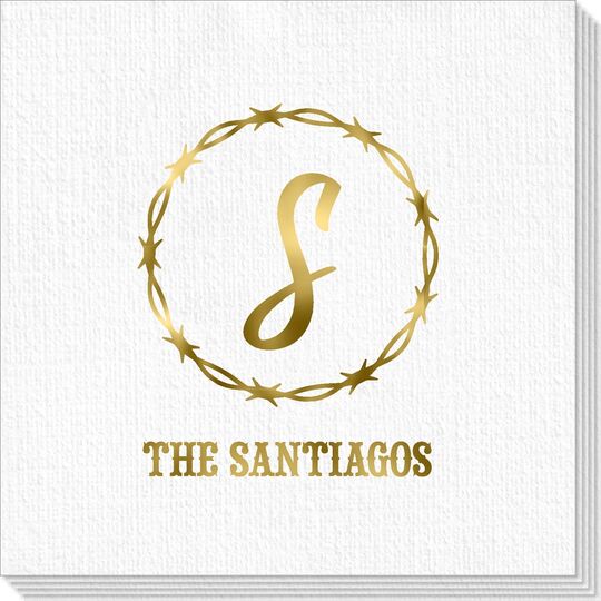 Sample shown using napkin with Gold Metallic Foil imprint and BLBE typestyle and Placement N - Horizontal Centered