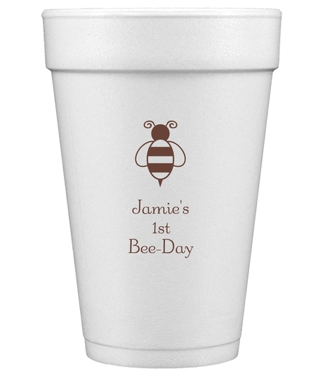 Personalized white styrofoam cups are party perfect for hot or cold drinks. Free online preview. Free 2nd side imprint. Choice of 8 oz., 10 oz., 12 oz., 16 oz., 20 oz., or 24 oz. cup sizes, 25+ imprint colors, and typestyles. Optional lids available. Insulated to keep beverages hot or cold. One-piece molded construction. Recyclable (#6-Polystyrene). CFC & BPA Free. Made and printed in the USA.