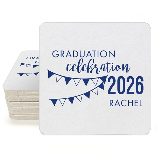 Personalized square coasters are a fun and functional accent to your table. Free online preview. Coasters are 4" square. Coasters are recyclable, reusable, and biodegradable. Made and printed in the USA.