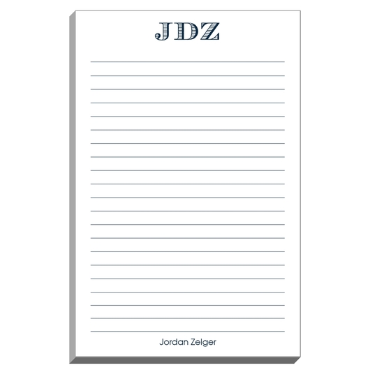 Add a personal touch to your desk with this trendy and modern personalized notepad. Notepads size is 5.5" x 8.5" and contain 100 sheets per pad. Flat-printed in ink color of your choice with typestyle as shown. Ruled lines are available. Optional blank white envelopes available. Positioning only as shown.
