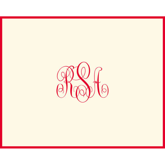 Classic Script Monogram Border Folded Note Cards - Raised Ink