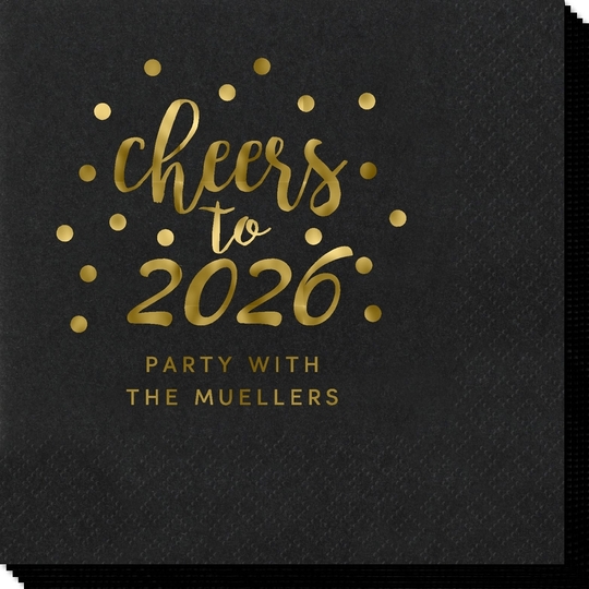 The Cheers Confetti design with your choice of year will always appear above personalization on napkins.