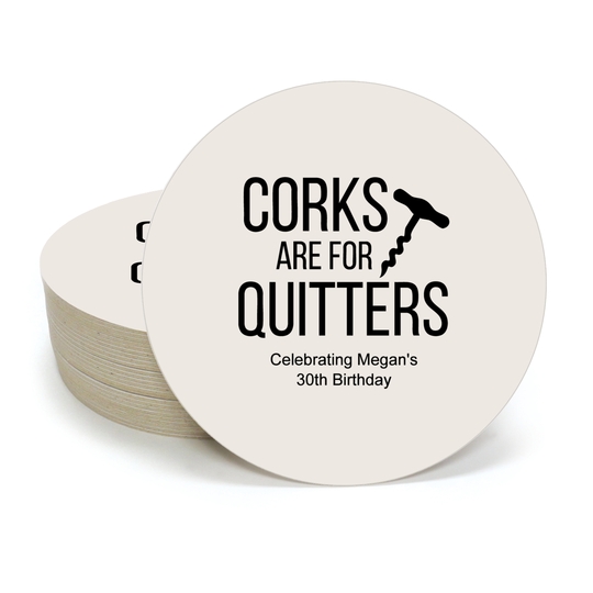The Corks are for Quitters design will always appear on coasters.
