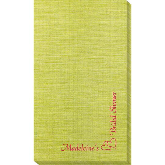 Soft and luxurious soft personalized disposable bamboo guest towels. Free online preview. Choice of napkin color and imprint color. Typestyle and positioning only as shown. Made of Premium 100% natural bamboo fibers with the look and feel of real linen. Sourced from Europe and personalized in the USA. Approximate size 4.375" x 8". Shrink wrapped in sets of 50.