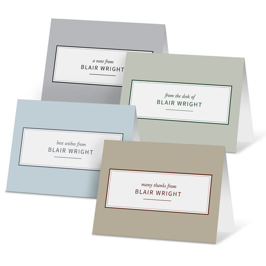 Send your regards with grace using our Elegant Greetings Folded Note Card Collection. These timeless cards offer a refined way to share your thoughts. Includes 4 different designs with matching blank white envelopes. Folded note card size is 5.5" x 4.25". Flat printed in ink color and typestyle only as shown. Inside of cards are blank white. Optional flat printed return address and envelope linings available. Arrives in a gift box with tissue.