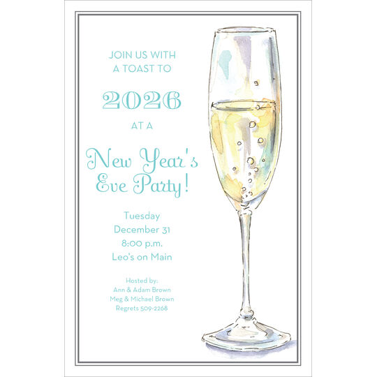 Celebrate the New Year with friends and family with these festive invitations.  This set of  invitations are flat printed in your choice of  typestyles. Blank envelopes are included. Invitation is 5.6" x 8.5". Ink color as shown. Printed return address available in flat printed black ink.