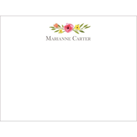 Hand-written notes are few and far between, but you can surprise your friends and family with a sweet note or thank you on these lovely personalized flat note cards. Card size is approximately 5.5" x 4.25". Imprint is flat printed in ink color as shown with typestyle of your choice. Printed return address in flat printed black ink available. Positioning only as shown.