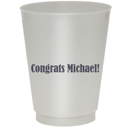Personalized colored frosted plastic cups add style to your event. Free online preview. Free 2nd side imprint. These shatterproof cups are perfect for indoor and outdoor entertaining. BPA Free. Choice of 12 oz. or 16 oz. cup sizes, 8 cup colors, 25+ imprint colors, and typestyles. Recyclable (#5-Polypropylene). BPA Free. Made and printed in the USA.