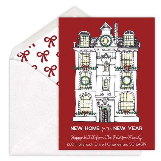 Send your new address information to your friends and family with this set of New Year cards. Flat printed in ink color as shown with typestyles of your choice. Fully printed back included. Size 5" x 7". Matching blank white envelopes included. Your choice of paper weight and card shape. Optional envelope linings and printed return address in flat ink color of your choice is available.