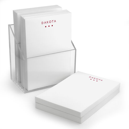 Sometimes you just want a stack of small notepads for all those little notes.  Our Petite Squares design is a perfect accent design with your personalization. Notepads have 100 sheets per pad. Your choice of nine 3" x 5" pads or six 4" x 6" pads. Your choice of stock color and flat ink color. Typestyle and positioning only as shown.