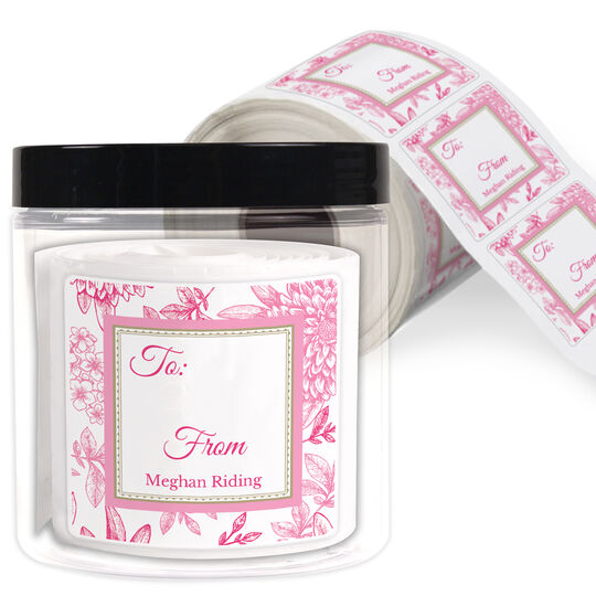 A Stationery Studio exclusive! This set of beautiful floral square labels are perfect for personalizing party favors or gifts year round. Sized 2.5" square. Flat printed in ink color as shown using typestyles of your choice.
