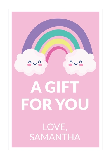 Your child's gifts will stand out to friends with this set of whimsical gift stickers. Gift stickers are printed on matte stock. Gift Stickers are 2" x 3". Flat printed in ink color as shown with your choice of typestyle. Positioning only as shown.