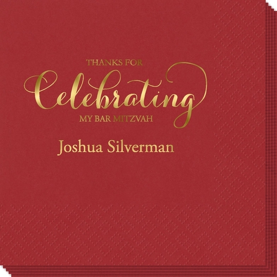 The "THANKS FOR Celebrating" design will always appear above your personalization on napkins.