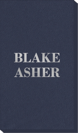 Sample shown using Skipper Blue guest towel with Silver Satin Foil imprint and Center Horizontal placement