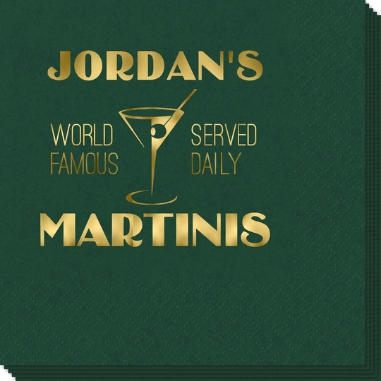 Beautiful high quality personalized 3-ply napkins in your choice of beverage, luncheon or dinner size. Free online preview. Choice of 30+ napkin colors and 40+ imprint colors. Typestyle and positioning only as shown. Shrink wrapped in sets of 50.