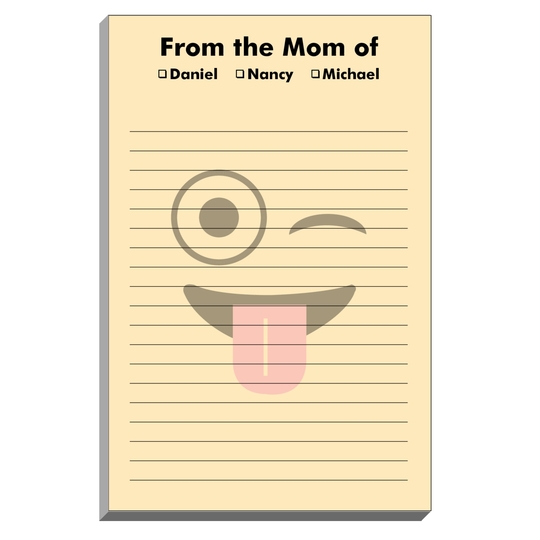 Add a personal touch to your desk with this trendy and modern personalized mommy or daddy notepad. Notepads size is 5.5" x 8.5" and contain 100 sheets per pad. Flat-printed in ink color and typestyle as shown. Optional writing lines and blank white envelopes available. Positioning only as shown.